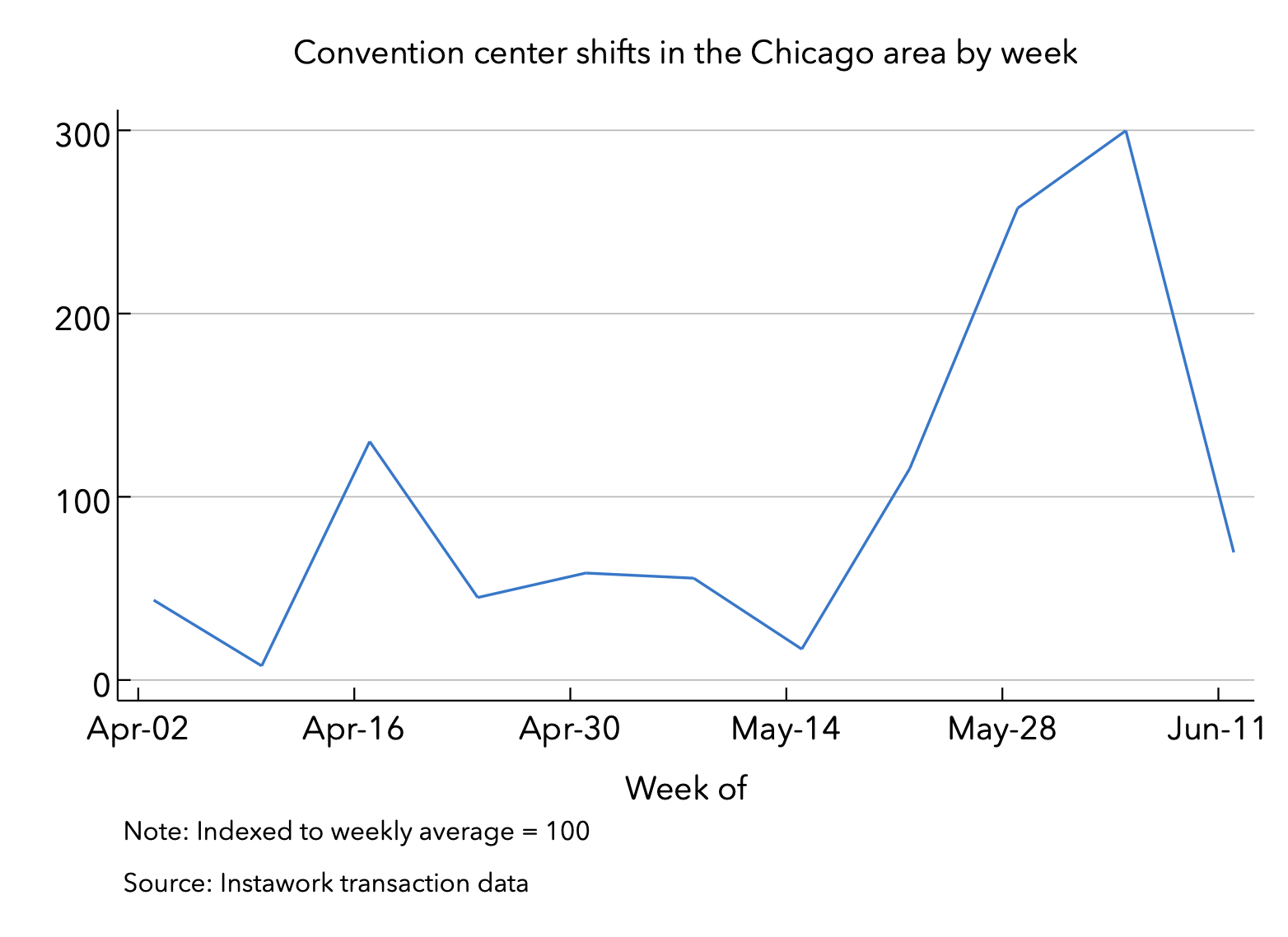 Demand for flexible labor at convention centers varied by the day of the week, too. In the New York and Los Angeles areas, the demand for flexible work was highest in the middle of the week. But in Las Vegas, demand was highest at the weekend.