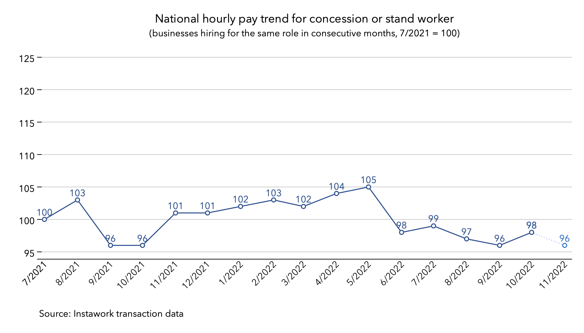 • Hourly pay in kitchen roles continued to be steady in October 2022 after earlier increases, while pay for event-related roles has been giving back some of its gains from the summer.