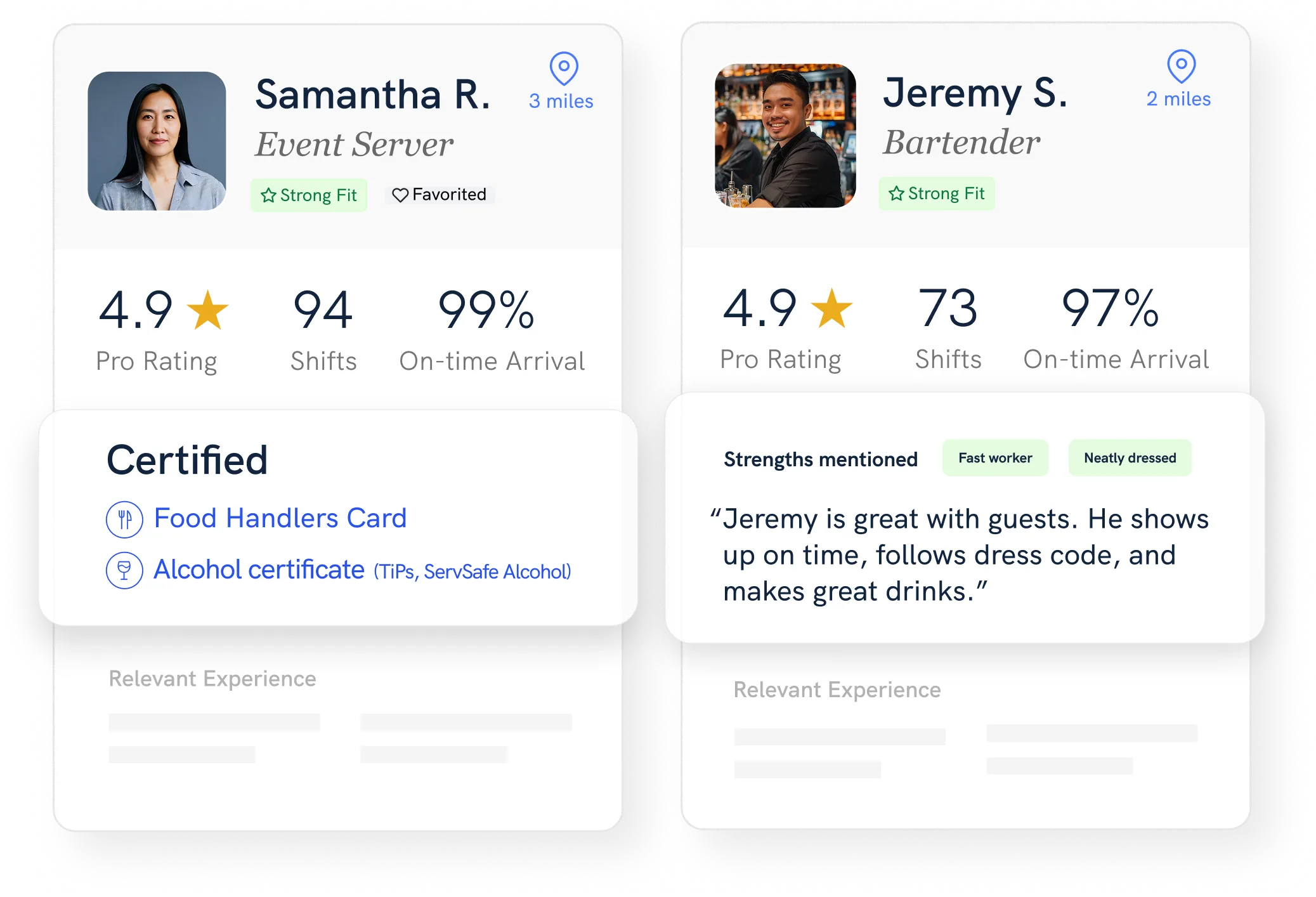 Build dependable teams across locations. Bring back your best workers, block poor fits and build a reliable roster, so every event runs smoothly.